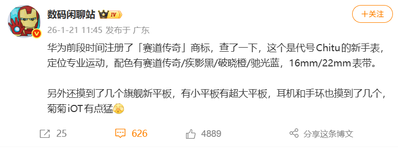 跑友注意!HUAWEI 秘密武器 “Chitu” 曝光:專業級運動手錶或成 GT Runner 正統續作?