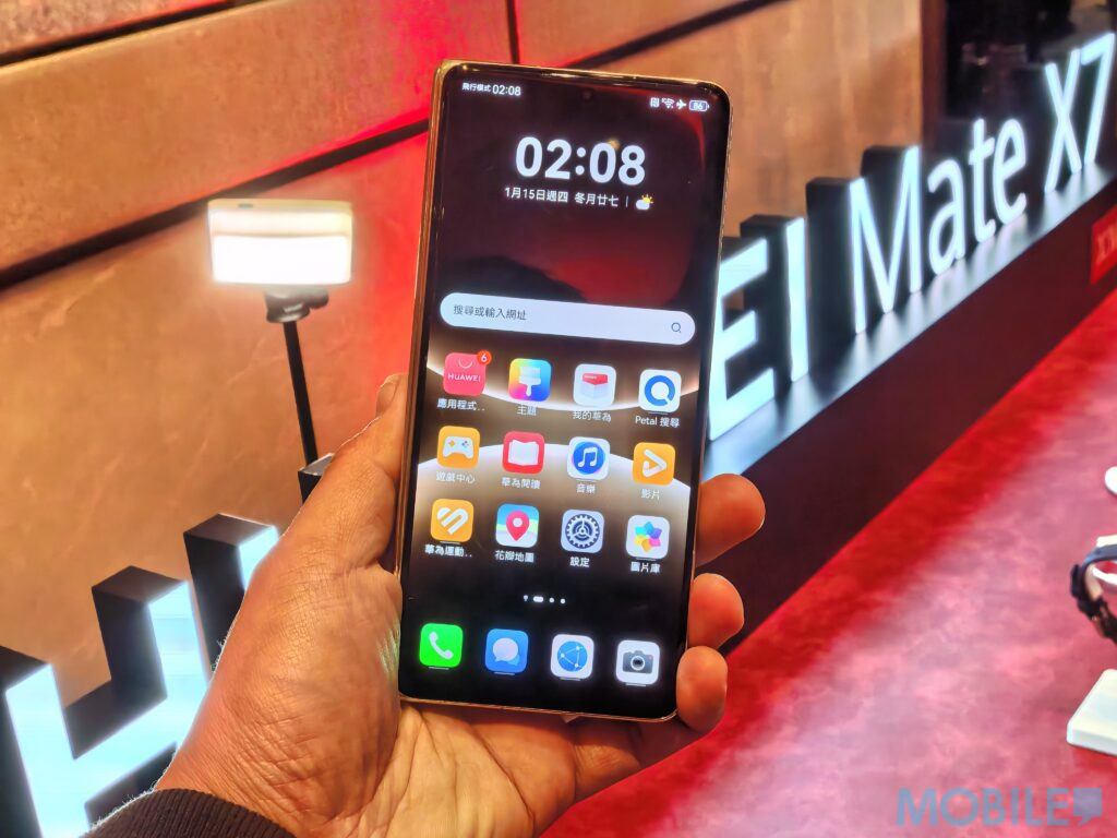 Mate X7 配備高品質的雙屏幕,8 吋內屏解像度為 2416 x 2210,峰值亮度達 2,500 nits,適合多任務處理與視聽娛樂 。6.49 吋的外屏則採用 LTPO 技術,解像度為 2444 x 1080,峰值亮度更高達 3,000 nits,確保戶外環境下的閱讀體驗 。系統同時引入多項 AI 智能功能,例如可移除照片多餘物件的「AI 智能消除」、優化團體合照的「AI 最佳表情」,以及提升通話質量的 AI 降噪技術 。