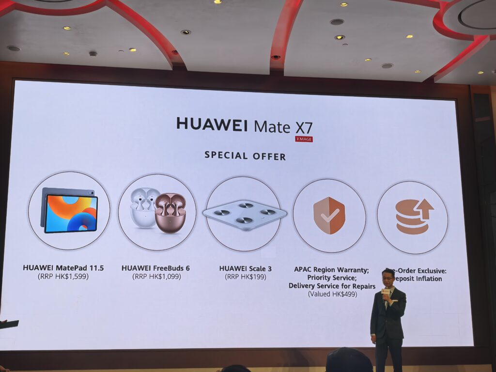 HUAWEI Mate X7 現已於 HUAWEI 香港網上商店 接受預訂(https://bit.ly/49sh1eV),於預訂期內支付訂金 $500,即可抵扣 $1500,優惠詳情及細則請瀏覽: https://bit.ly/4mYVD79。