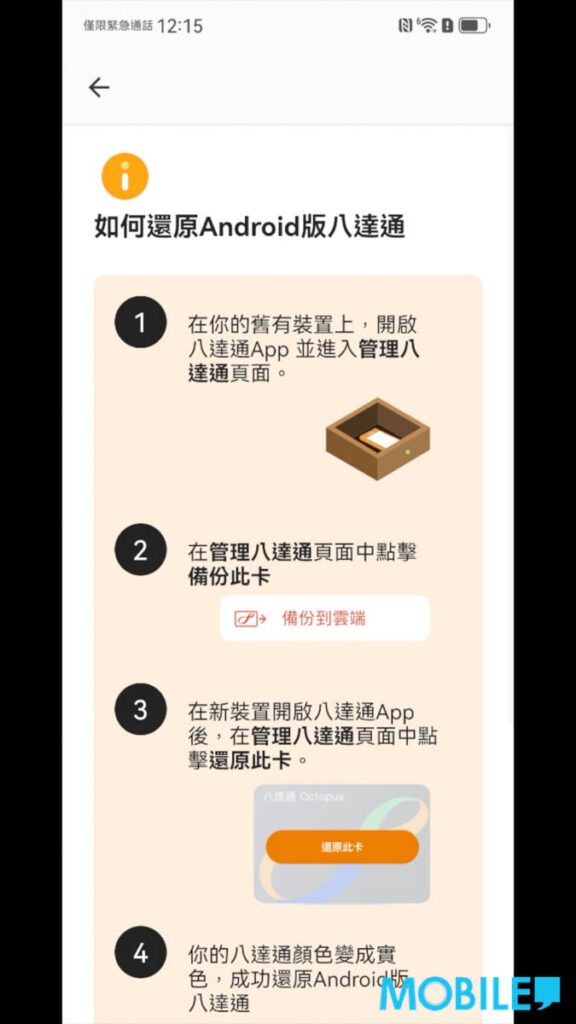 ▲ 可按指示將還原八達通至新裝置