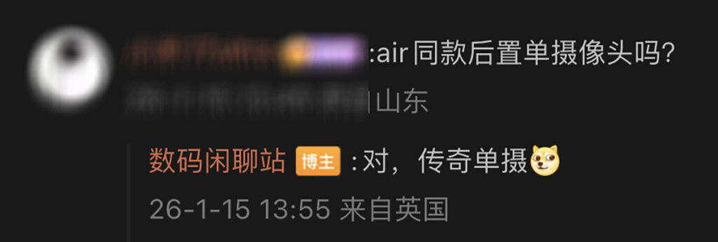 另外攝影方面消息人回應網友提問時指,iPhone 17e 亦會保留 iPhone Air 同款單鏡頭設計,估計除成本外亦為突顯與標準版 iPhone 17 產品差異。