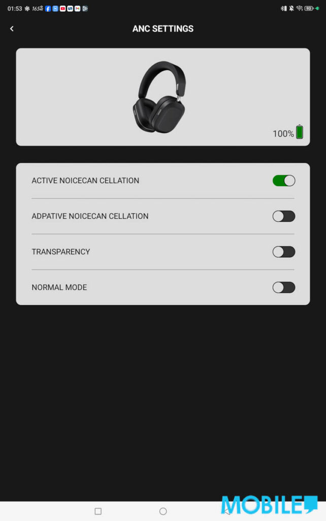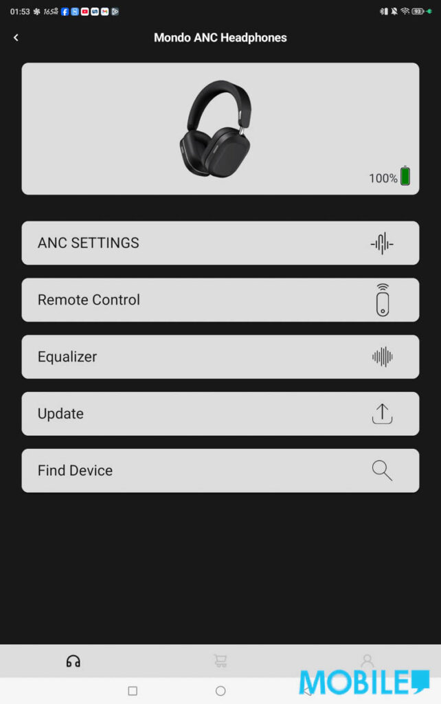 MONDO ANC Headphones 耳機可透過《MONDO by defunc》App 連接 Android 及 iOS 裝置,以 Android 版試用介面支援尋找裝置功能,列表式 ANC 選項精晰。
