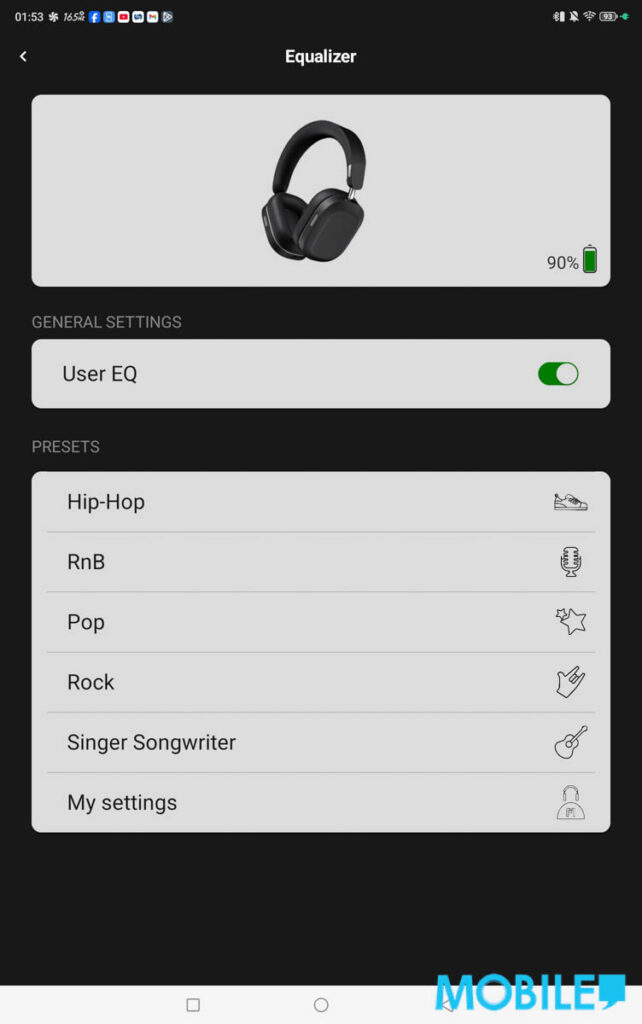 用家可透過《MONDO by defunc》選擇 5 組預設 EQ 或按喜好自行設定,聲音表現部份試聽 milet《The Story of Us》配樂包圍感強、女聲偏中央位置。