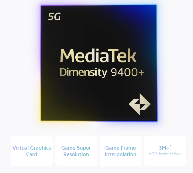 機身內部則搭載由 3nm 工藝打造的聯發科 Dimensity 9400+ 處理器,配合最高 12GB LPDDR5X RAM 以及 512GB UFS 4.1 快閃記憶體,為用戶提供流暢的運算體驗。