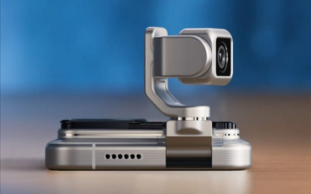 文中提到 ROBOT PHONE 可升降自由雲台鏡頭、跟隱藏式機械臂設計,經 AI 智能調整角度,實現自動構圖、目標跟隨防震拍攝,並經情感感知能力加強相關表現。