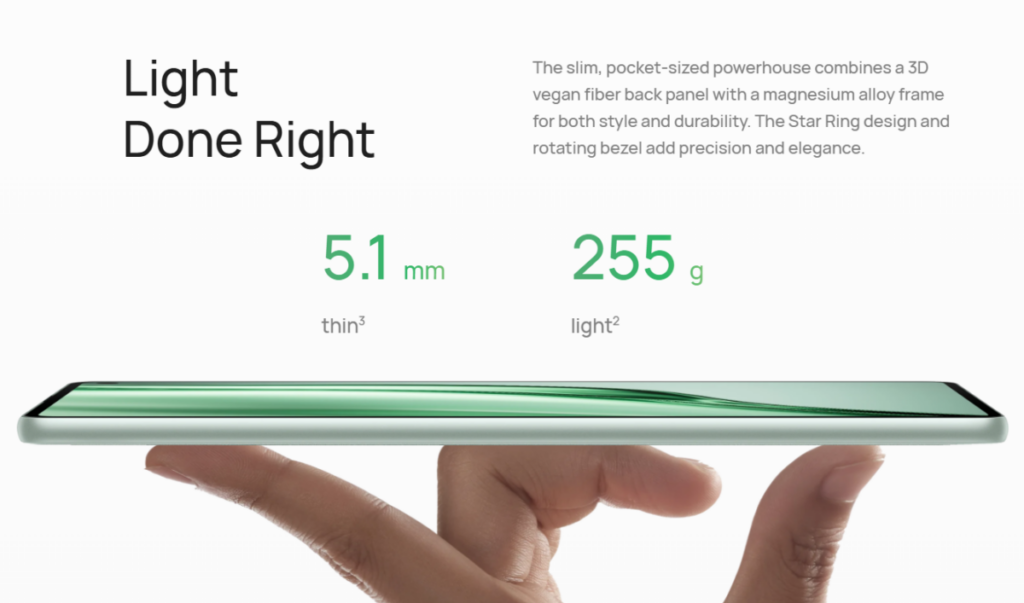 與競爭對手相比,MatePad Mini 機身尺寸僅為 198.59 x 127.27 x 5.1mm,重量控制在 255g,比市場同類產品更為纖細。全球版本提供了雲杉綠與曜石黑兩款配色。最引人注目的是其超窄邊框設計,使得這部裝置在保持小巧體積的同時,提供了更高的螢幕佔比。
