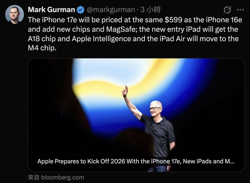 - iPhone 17e、新 iPad 跟 MacBook 推出在即!全線硬件提升、標準版都支援 Apple Intelligence