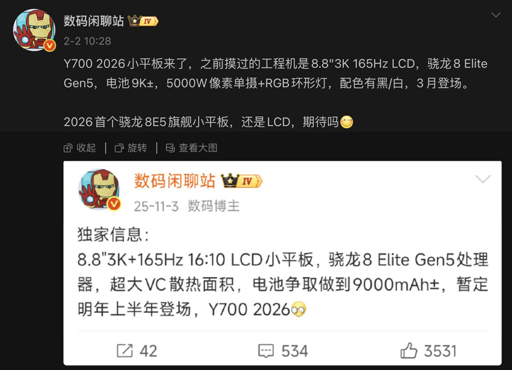- LENOVO 拯救者 Y700 五代細屏旗艦平板資訊初曝!S8E Gen5 加持、8.8 吋 3K 屏,電池容量大提升?