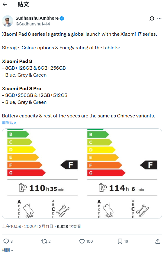 小米去年 9 月於國內率先發表全新的 Pad 8 及 Pad 8 Pro 旗艦平板,近日有確切消息指出這兩款新機即將進軍國際市場。據網上流出的最新資訊,這兩款平板已經取得歐盟能效標籤認證,預示著全球發佈日期已近在咫尺。業內消息預計,小米將按照慣例,選擇在 3 月 2 日於巴塞隆拿舉行 MWC 前夕,與新一代旗艦手機 Xiaomi 17 及 Xiaomi 17 Ultra 一同在國際市場亮相。