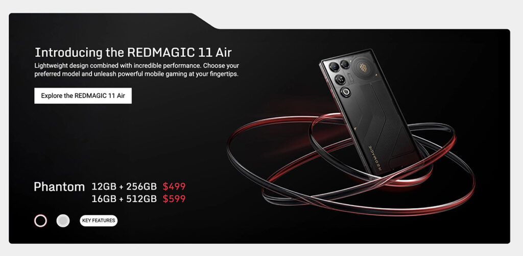 據 REDMAGIC 官方網店資訊,REDMAGIC 11 Air 國際版具黑白雙色選擇,提供 12+256 跟 16+512 儲存配置,早鳥價 469 美元(約港幣 $3,660)起。