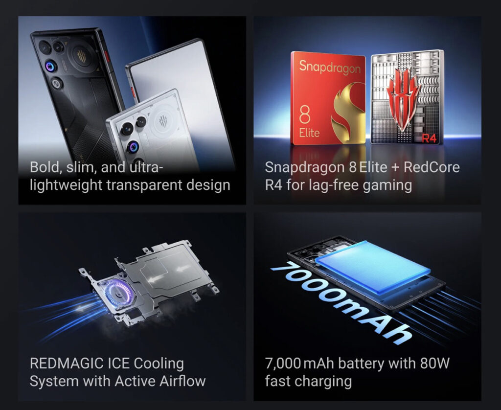 REDMAGIC 11 Air 擁有招牌 ICE 風冷散熱扇系統,機身厚度收窄至 7.85mm、207g 機重內置 7,000mAh 電池、具 80W 閃充及 IP54 生活防水。