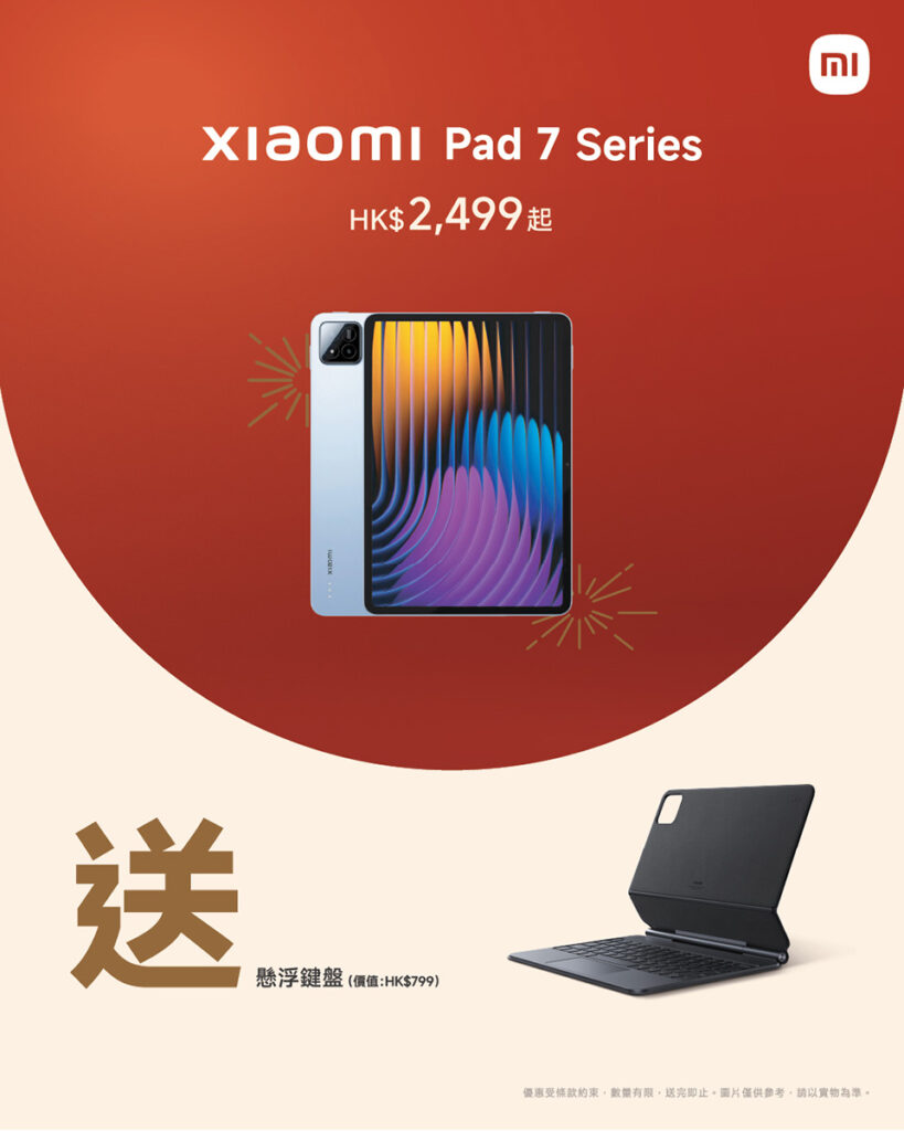 據小米香港官方 Facebook 專頁資訊,現凡入手 Xiaomi Pad 7 跟 Xiaomi Pad 7 Pro 平板,出機即送專屬懸浮鍵盤灰色款(價值 $799),讓平板隨時化身文書筆電。