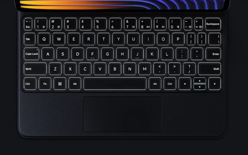 Xiaomi Pad 7 / Pad 7 Pro 鍵盤具 0°–124° 無級調節、多點輸入大型觸控板、五行排列 15 x 15mm 鍵帽具 1.3mm 高鍵程鍵感舒適,背光功能方便低光環境使用。