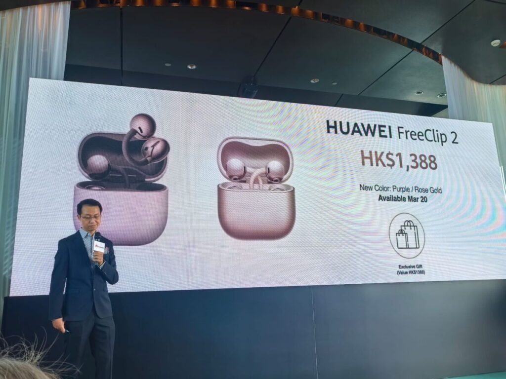 全新配色的 HUAWEI FreeClip 2 建議零售價為 $1,388,同樣於 3 月 20 日起正式開售,選購者可獲贈價值 HK$188 的專屬禮品 。