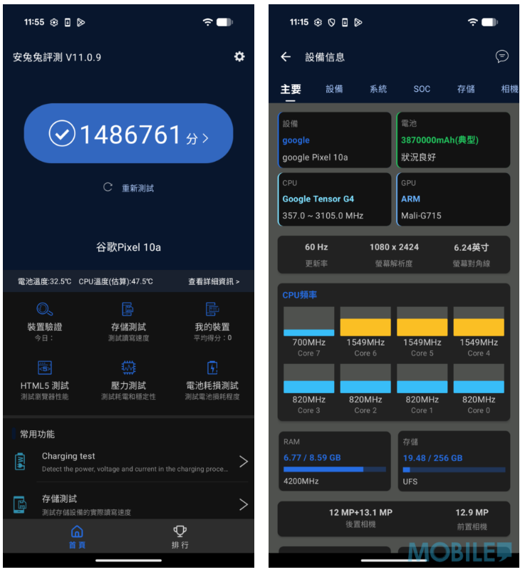 ▲Pixel 10a 沿用 Tensor G4 晶片。雖然這顆晶片在跑分數據上僅與中高階的 Dimensity 8400 相當,甚至低於部分競爭對手,但在日常使用中,系統流暢度極佳。