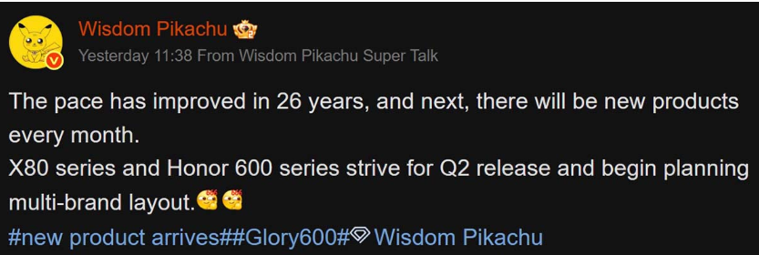 據知名爆料達人 SmartPikachu 的消息指出,HONOR 600 系列預計會在今年第二季正式發表,具體時間點大約落在 5 月至 6 月之間。這一預測參考了去年 HONOR 400 系列在 5 月登場的慣例,顯示品牌傾向於維持穩定的更新週期。有趣的是,這次 HONOR 600 系列有可能會優先在海外市場現身,隨後才回歸國內市場發表,並預計與 X80 系列一同亮相,強化中高階產品線的競爭力。