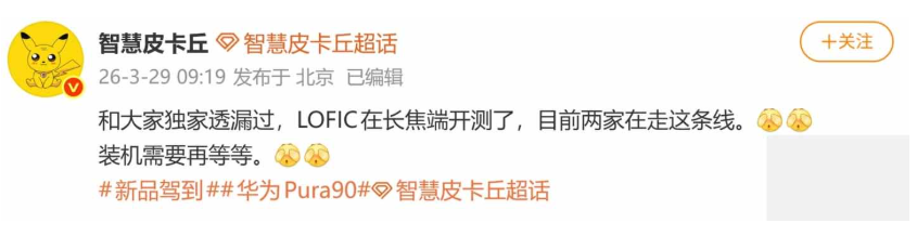 據知名科技博主「智慧皮卡丘」的消息,目前已有兩家主流國產手機廠商正針對長焦鏡頭測試 LOFIC 結構,雖然相關貼文未有指名道姓,但標籤中明確提及了「華為 Pura 90」,暗示該技術極大機會出現在這款明年的影像旗艦上。