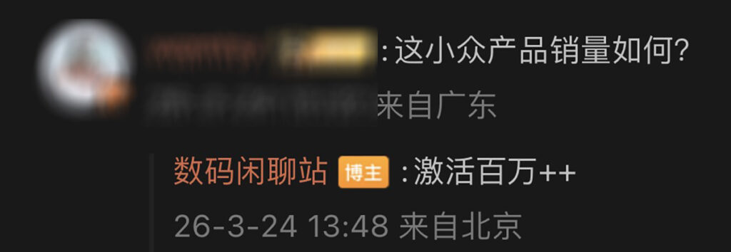 據爆料人回應網友提問,雖 Pura X 設計在市場上相當罕有,不過現時產品銷量已突破 100 萬部,足證其在市場受歡迎程度。