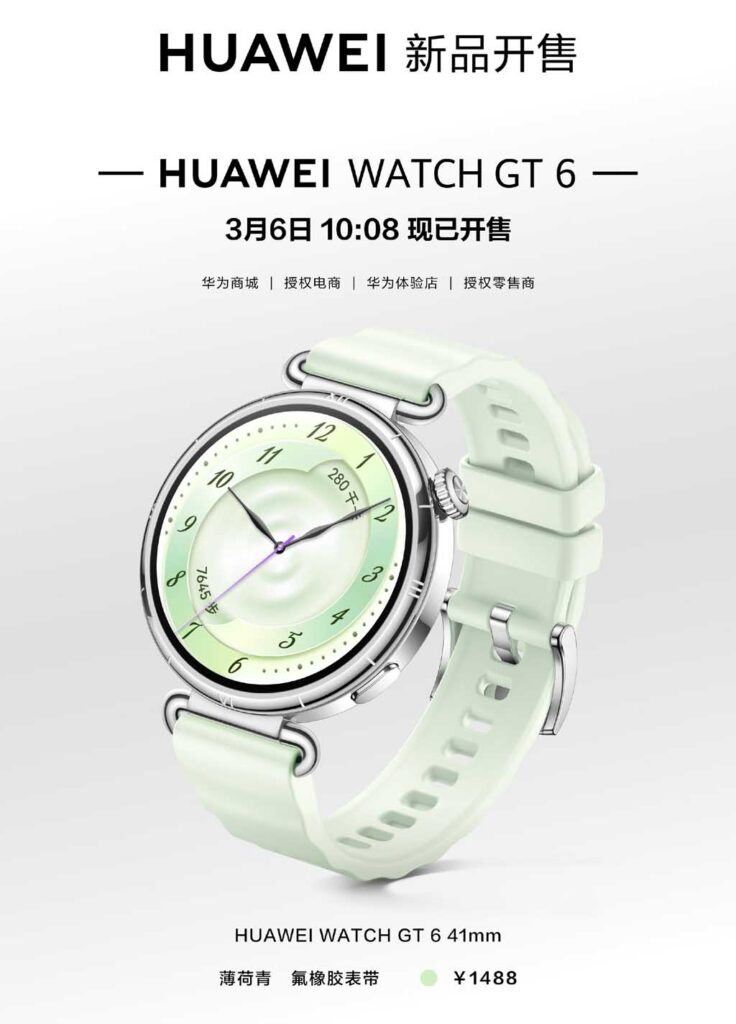 HUAWEI Watch GT 6 薄荷綠版本定價為 1,488 元人民幣,並於 3 月 6 日上午 10:08 正式發售。消費者在選購時還可加購 99 元人民幣的 Huawei Care+ 服務,為新錶提供更周全的保障。