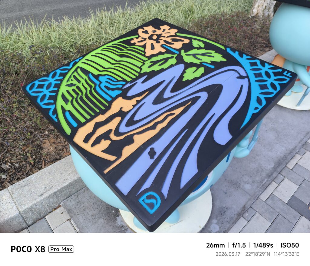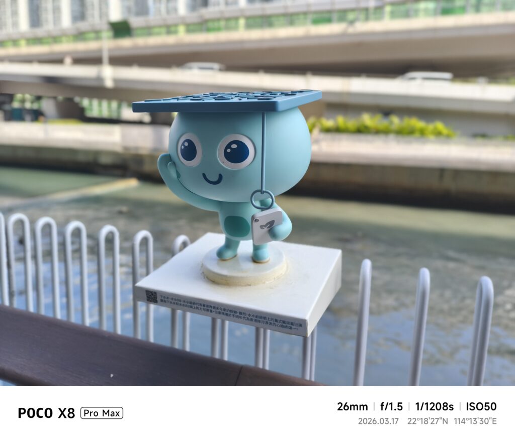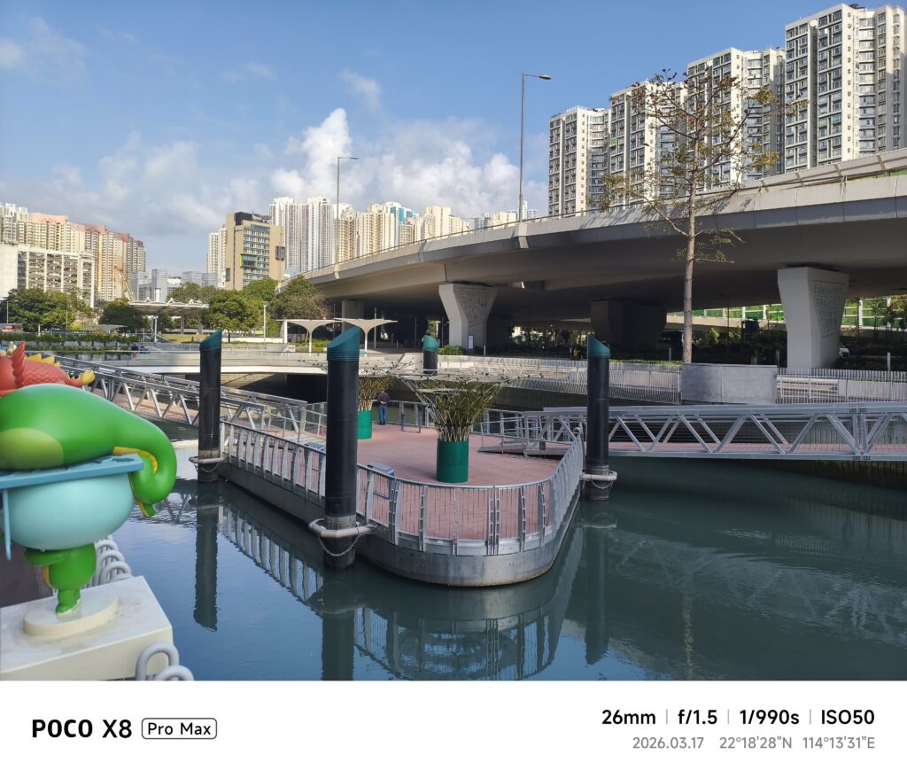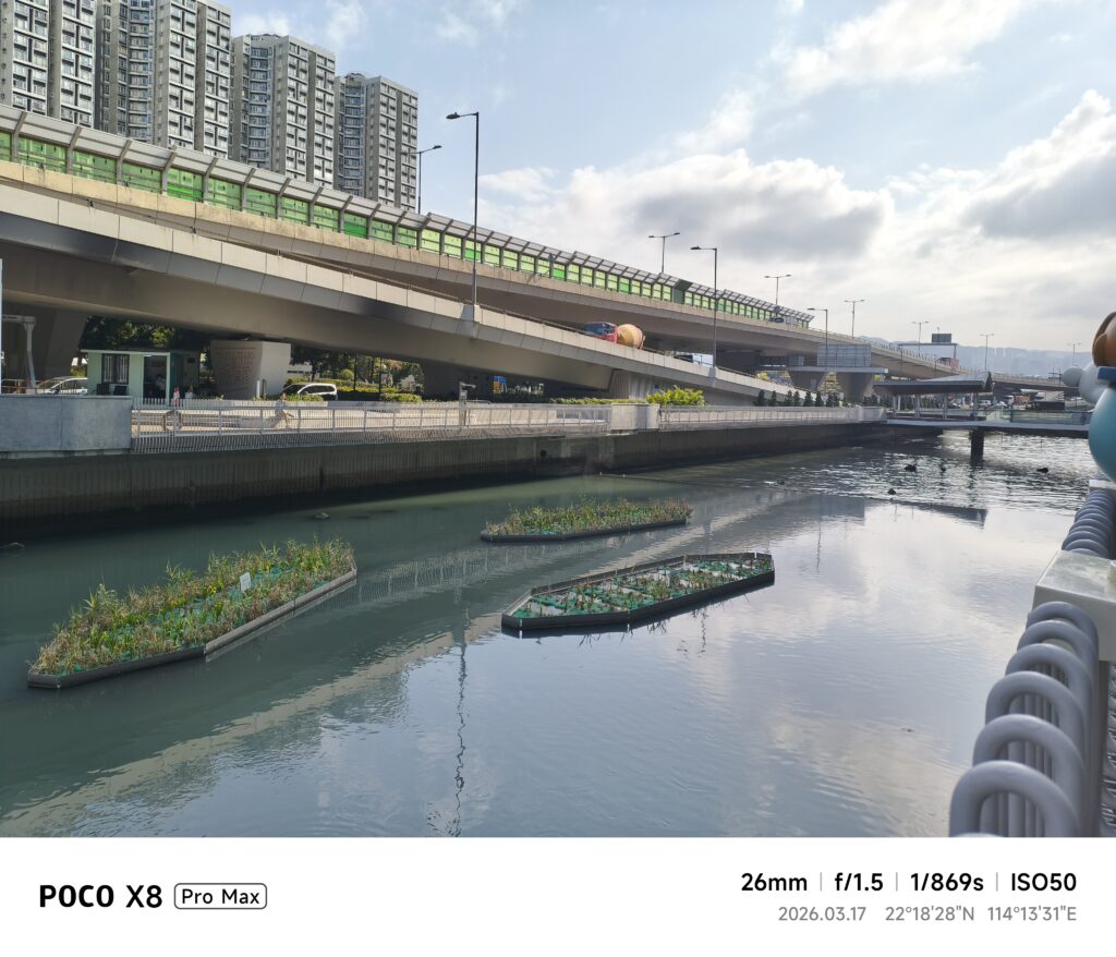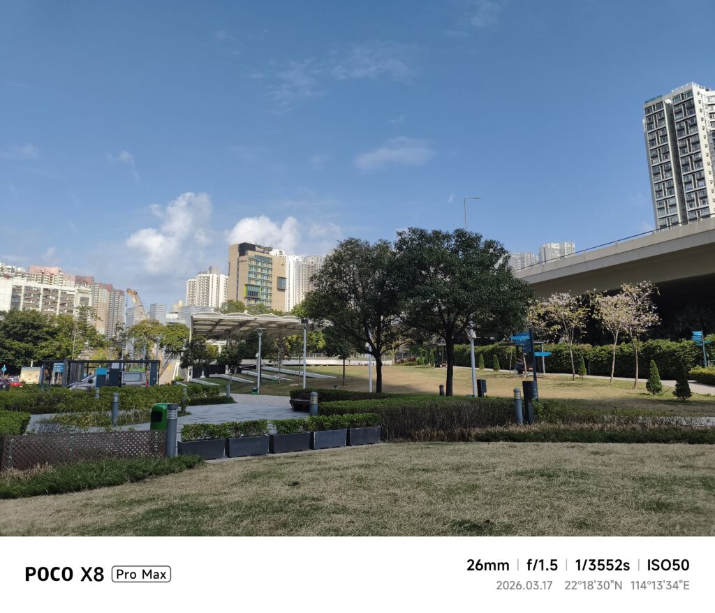 在相機配置上,POCO X8 Pro Max 搭載了 5000 萬像素 Light Fusion 600 主鏡頭。這顆感光元件在日間光線充足時能拍出色彩鮮艷、對比度十足的照片。即便切換到 2x 數位變焦,細節保留依然相當到位,甚至在夜間環境下也能維持極高的銳利度與色彩還原度。不過,800 萬像素的超廣角鏡頭表現相對平庸,且缺乏專用的長焦鏡頭是較為明顯的短板。自拍方面,2000 萬像素前鏡頭改用更寬廣的 21mm 焦距,非常適合多人合照或 Vlog 錄影。