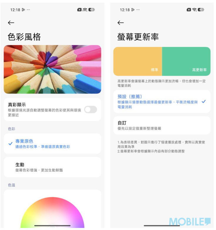 ▲畫面部份對應專業原色及動態更新率。