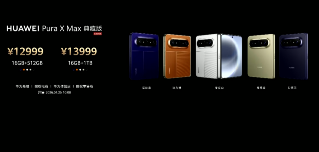 最後在售價部分,華為 Pura X Max 12GB+256GB 版本定價為 10,999 人民幣,12GB+512GB 版本為 11,999 人民幣。至於配置更高的典藏版,16GB+512GB 售價為 12,999 人民幣 ,而頂配的 16GB+1TB 版本則售價 13,999人民幣。周邊配件如手寫筆單買為 599 元,具備充電功能的保護殼套裝為 949 人民幣,專業攝影套裝則售價 1,699 人民幣。