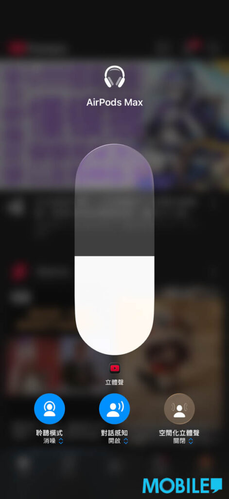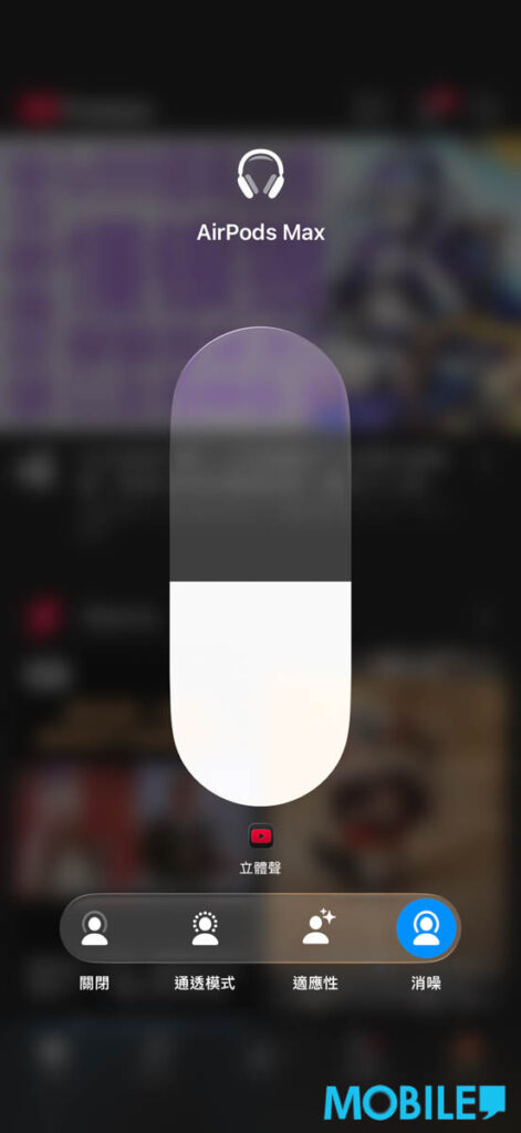 ▲ 以 iPhone 17 Pro 連接 AirPods Max 2 耳機,可在音量欄設定各項功能