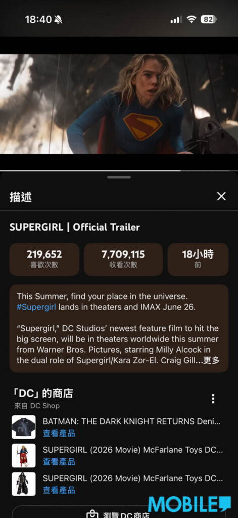 ▲ 播放 YouTube 《SuperGirl》預告片,後段戰鬥內容電影特效聲場效果不錯