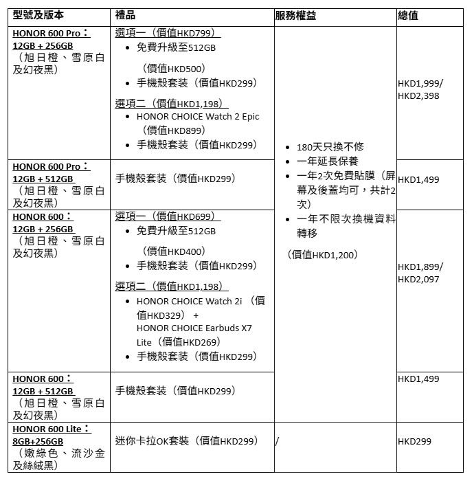除了旗艦型號,HONOR 同步推出入門級的 600 Lite,配備 1 億像素鏡頭與 6,520mAh 電池,同樣支援 AI 圖轉影片功能,讓大眾能以更親民的價格體驗 AI 創作。