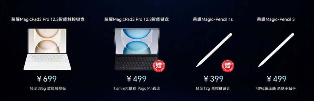 配套上 MagicPad 3 Pro 12.3 對應具玻璃觸控版的智能觸控鍵盤,售價 699 人民幣(約港幣 $800),跟售 499 人民幣(約港幣 $570)的 Magic-Pencil3 等。