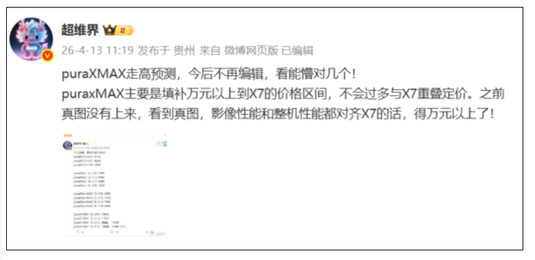 華為下一代旗艦 Pura 90 系列近期再有最新動向,據業內博主「超維界」的最新分析,華為正計劃透過全新的機型佈局來填補市場價格真空帶,當中討論度最高是傳聞中的頂規型號 Pura X Max。這款新機的定位相當明確,主要目標是接軌傳統旗艦與摺疊螢幕手機 Mate X7 之間的價格區間。