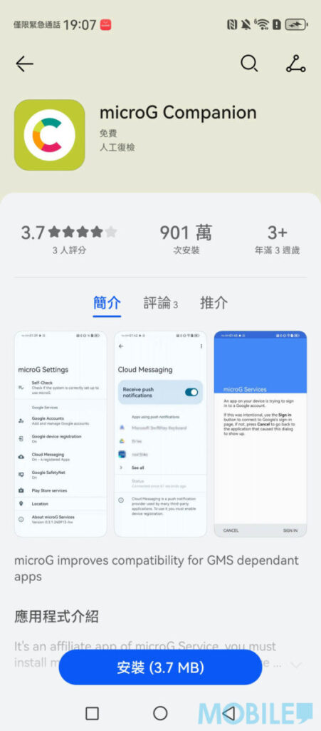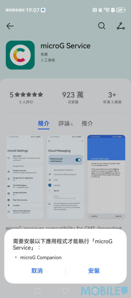 ▲ 實試無論先選擇任一 microG 工具,系統均會提示並下載另一 App,無需擔心