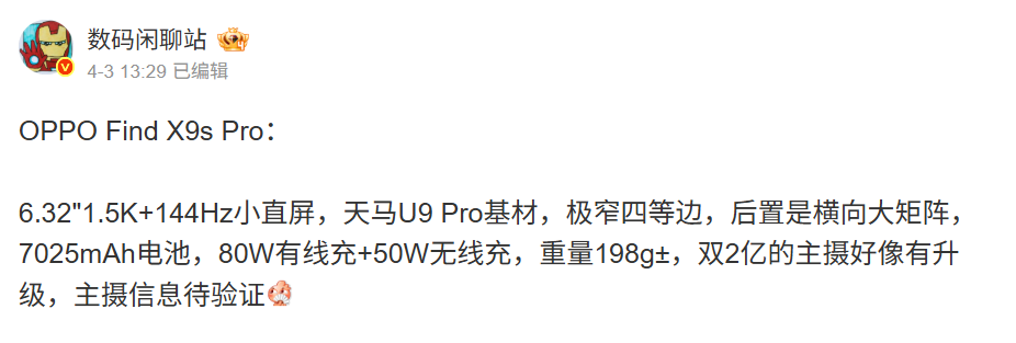 - OPPO Find X9 Ultra 及 X9s Pro 規格詳情曝光:超大容量電池與長焦鏡頭成核心賣點!