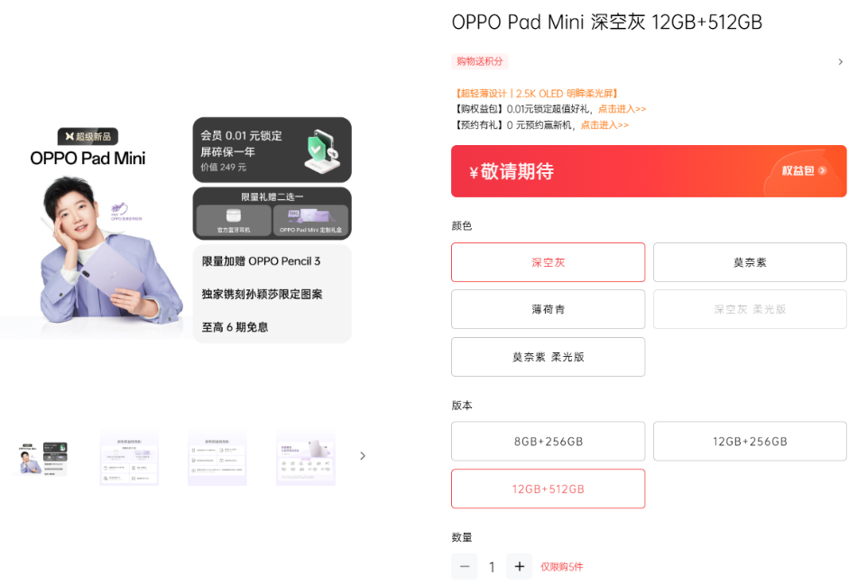 - OPPO Pad Mini 旗艦小平板 4 月 21 日登場:配備 8 Gen 5 處理器及 8.8 吋 2.5K OLED 螢幕!